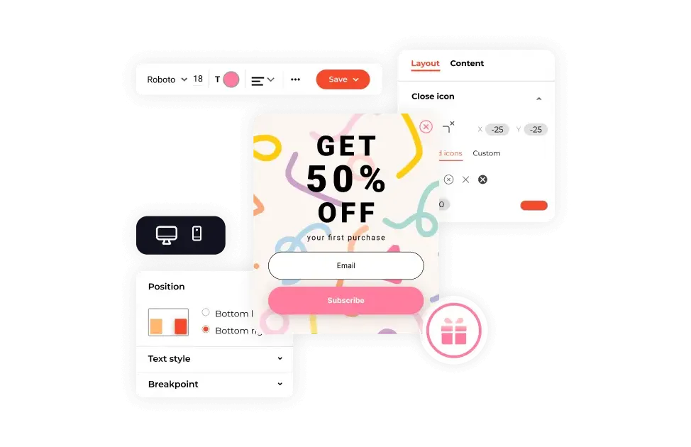 Claspo allows users to make creative pop-ups, like spin the wheel, gift box, and scratch card widgets, with reward management.