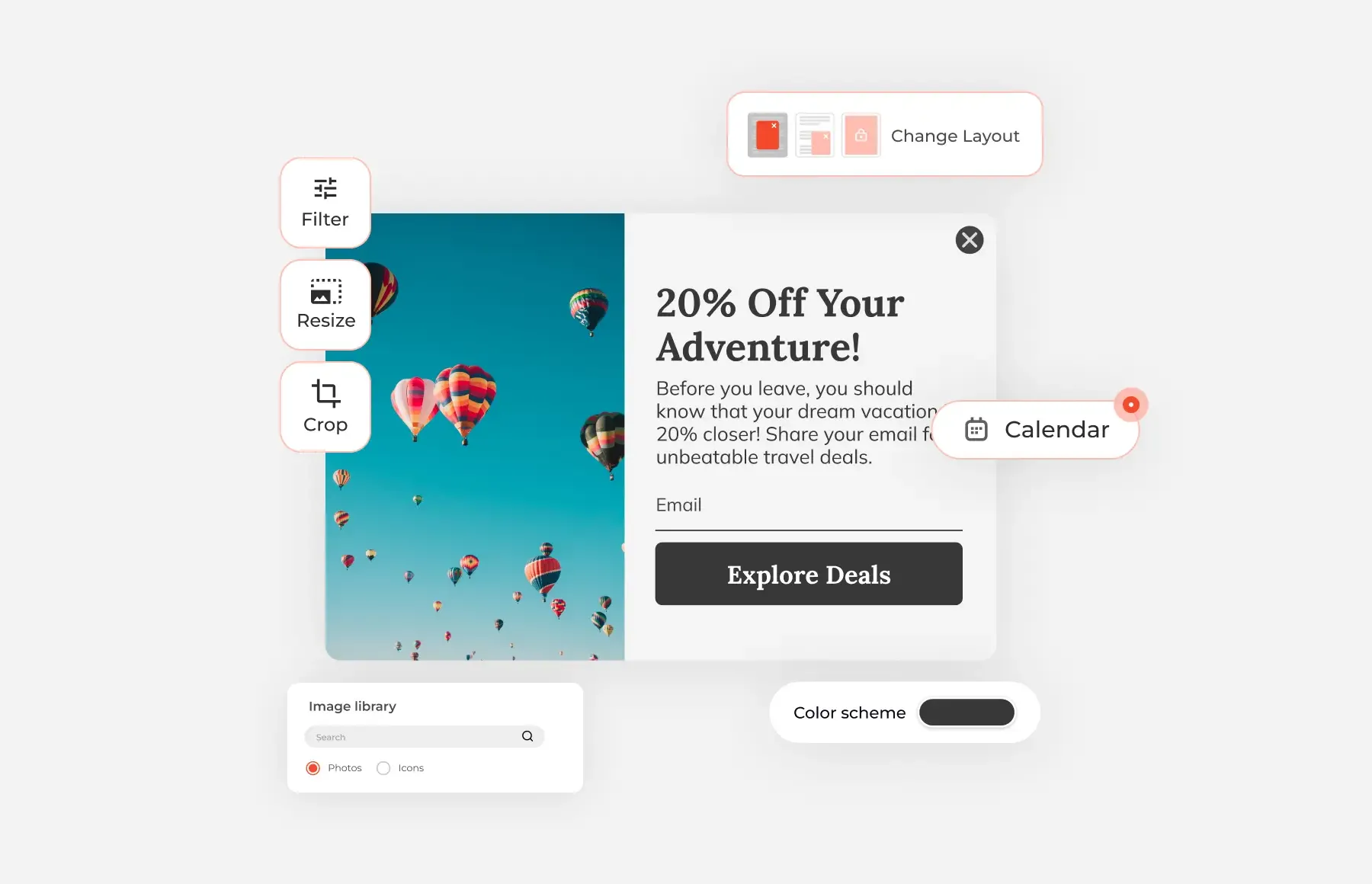 Claspo allows users to create pop-ups that match the company brand and campaign concept using a library of over 100 templates.