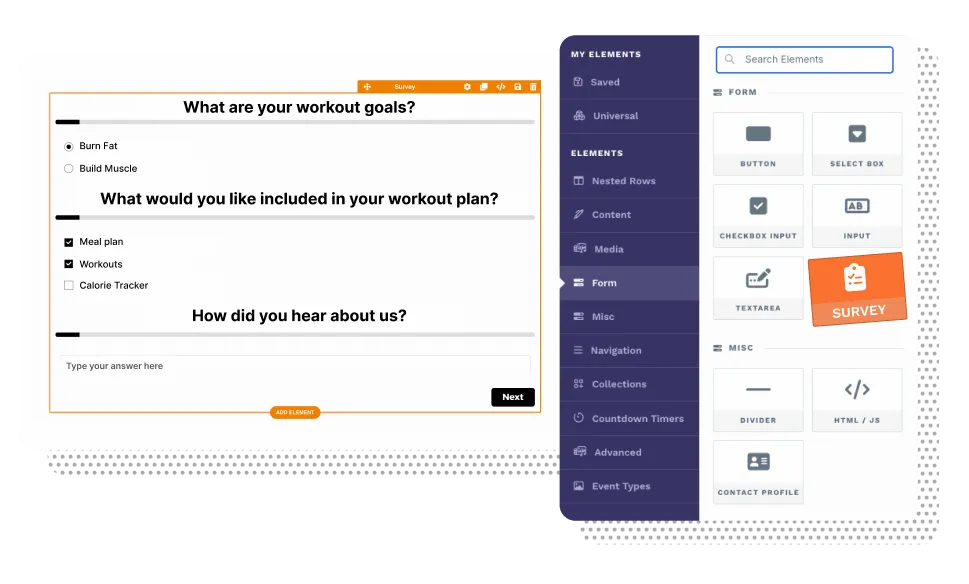 ClickFunnels allows users to add survey rules to survey workflows to present relevant choices automatically based on selected answers.