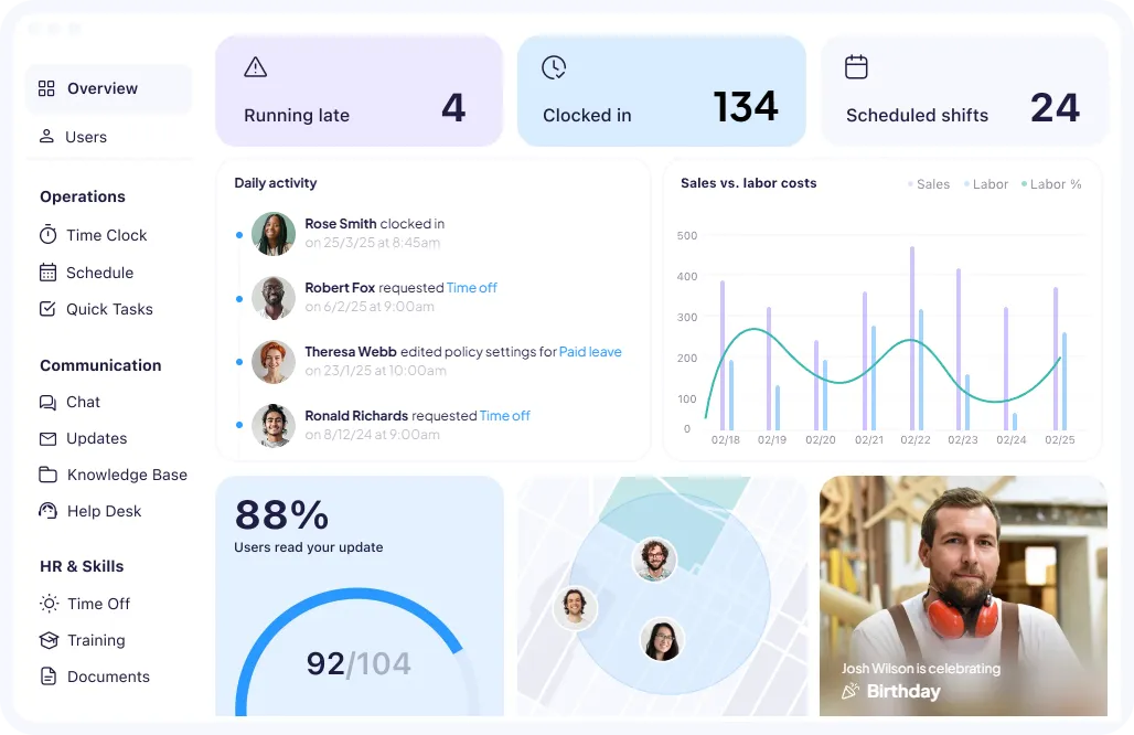 All-in-one solution to connect deskless teams, simplify everyday work, and organise work operations.